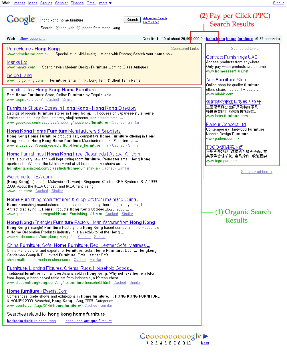 Search engines are designed to allow Internet users to quickly find information that they seek through the "organic" search results. With PPC, advertisers are able to post up small text-based advertisements within designated areas of the search results page that are billed based on the number of clicks the advertisement is clicked. The price of each click is determined by the popularity of the keyphrase chosen by the advertiser.
